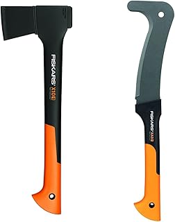 Fiskars Universalaxt, Inklusive Klingen- und Transportschutz, Länge 44 cm, Antihaftbeschichtet & Machete, 50,5 cm, Antihaftbeschichtet, Gehärtete Stahlklinge/Glasfaserverstärkter Kunststoffgriff
