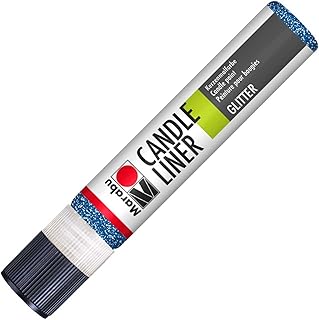 Marabu 18050009594 - Candle Liner glitter saphir, Kerzenpen, cremig, weiche Wachsmalfarbe, auf Wasserbasis, lichtecht, geruchsneutral, wetterfest, kinderleichte Kerzendeko, 25 ml