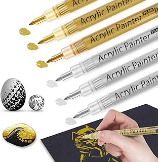 Acrylfarbstifte, Acrylfarbe Marker Gold und Silber für Holz, Glas, Metall und Keramik, Holz, Stein, Stoff, 0,7 mm feine Spitze, auf Wasserbasis
