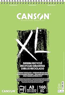Canson 200777129 XL Recyclé Blocks, leicht gekörnt, 160 g/m², 50 Blatt pro Block"Spirale an der kurzen Seite", 297 x 420 mm, weiß