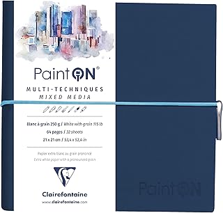Clairefontaine 975436C - Skizzenbuch mit Fadenbindung, 64 Blatt Zeichenpapier PaintOn gekörnt 19x19 cm 250g, Gummizugverschluss, Softcover Blau