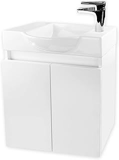 Alpenberger Hochglanz-Waschbecken mit Unterschrank - Vormontiertes Hand-Waschbecken - Badmöbel-Set für Badezimmer & Gäste-WC - Keramik - Komplett-Set