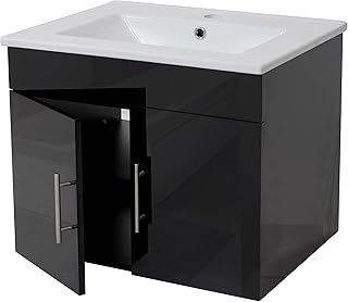 Mendler Waschbecken + Unterschrank HWC-D16, Waschbecken Waschtisch, Hochglanz 60cm - schwarz