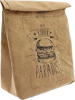 Pausenbrot-Tasche, Braune Lunchbag isoliert kalt oder warm, Kühltasche mit Klettverschluss, thermische Tasche (Lunchbag Burger Paradise)