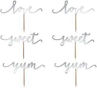 Simplydeko Cake-Topper | Deko Picker | Partypicker | Tortenstecker | Kuchen-Topper | Kuchenstecker zu Hochzeit & Geburtstag | Love in Silber | 6 Stück