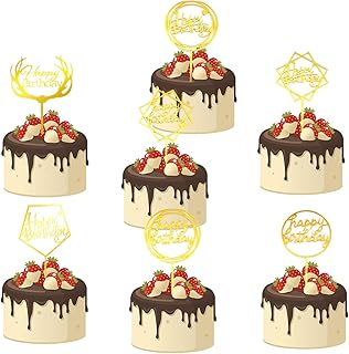 Chingde Kuchendeckel Topper Geburtstag, 7 Stück Acryl Cake Topper, Tortenaufsatz, CupcakeTopper Personalisiert, Kuchen Topper Happy Birthday für Geburtstag Party Dekoration