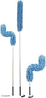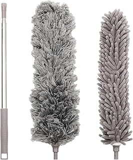 Staubwedel-Set aus Mikrofaser, Teleskop, mit zwei Staubwedeln, nachfüllbar, waschbar, Staubwedel und Staubwedel, Mikrofaser, Griff aus Edelstahl, ideal für Haus und Auto