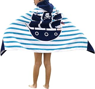 Ymwave Kinder Kapuzen Handtuch Bade Badetuch Bademäntel Strandtuch Badetuch Baby Kapuzentuch für Jungen und Mädchen 100% Baumwolle, Piratenschiff Boot,