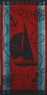Betz Velours Strandtuch Duschtuch Badetuch XXL 100% Baumwolle Größe 75x150cm Dessin: Boot Farbe: rot