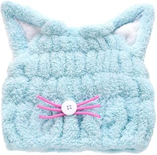 Minkissy Katze Ohr Haare Handtuch Mikrofaser Wrap Turban Schnell Trocknend Bad Schnell Trocknend Saugfähigen Haar Trockenhaube Badzubehör für Mädchen Frauen Blau