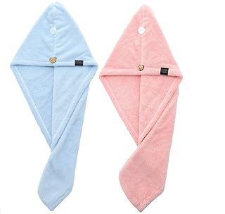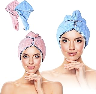 keyaway 2er Pack Haar Trocknen Handtuch, Haar Wrap Turban Kopf Wrap dick und schnell trocknend Haar für Bad, Schwimmen (blau und rosa)