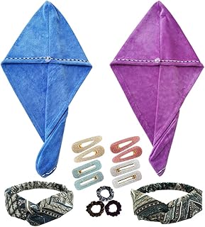 FYHappy Mikrofaser-Haar-Handtuch, schnelltrocknende Handtücher, Turban-Kappe mit Haarbändern, Stirnband, Haar-Clips, elastische Bänder, Haar-Accessoires für Frauen und Mädchen