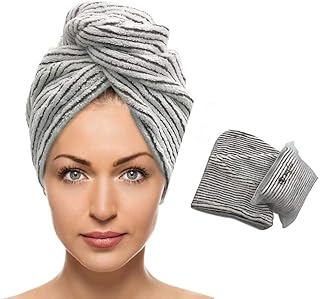 Anzonn Haartrocknungs-Handtuch, Haarhandtuch für Frauen, Bade-/Duschkopf-Handtuch, Anti-Frizz, schnell trocknend, großes langes Haar, Turban, Twist-Handtuch mit Knopf lockiges, und dickes Haar