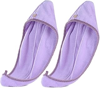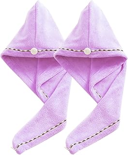 Hair Wrap Handtuch, Mikrofaser, saugfähig, schnell trocknend, Duschkopf, Turban, Duschhut, Badetücher für langes, kurzes lockiges Haar für Frauen, Damen, Mädchen mit Knopfschlaufe Violett, 2 Stück