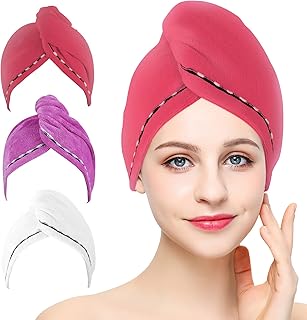 3 Pack Haar Handtuch Wrap (Lila,Rot,Blau), Wrap Turban, Haarturban, Kopfhandtuch Baumwolle, Mikrofaser-Haartuch, schnell Magic Trockner, Super saugfähig, super nach Bad und Dusche