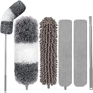 Ausziehbarer Staubwedel, 5 Stück, Staubwedel Reinigungsset mit 76.2 - 254.4 cm Edelstahl, extra langer Teleskop, Mikrofaser-Staubwedel für die Reinigung von Spinnweben, Jalousien, Autos usw.