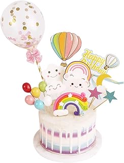 iZoeL Konfetti Ballon Tortendeko Regenbogen Geburtstagskuchen Happy Birthday Topper Luftballon Wolke Sterne für Kinder Mädchen (Konfetti Ballon)