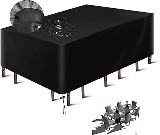 Abdeckung für Gartenmöbel, Wasserdichtes Gartentisch Abdeckung, Winddicht, Uv-Beständiges, Schwerlast Oxford Gewebe Schutzhülle für Gartentisch Sitzgruppe, Rechteckig