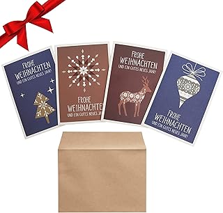 Weihnachtskarten mit Umschlag (20 Stk) - Faltbare Blanko Weihnachts Karte Adventskarten mit 4 Motiven (je 5x), Weihnachtskartenset mit Frohe Weihnachten und ein Gutes Neues Jahr Karten