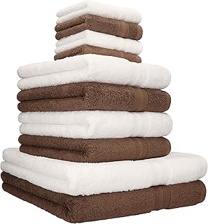 Betz 10-TLG. Handtuch-Set Gold Luxus Qualität 600g/m² 100% Baumwolle 2 Duschtücher 4 Handtücher 4 Seiftücher Farbe weiß & nuss braun