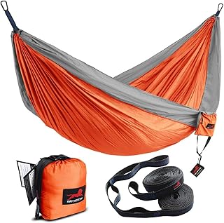 HONEST OUTFITTERS Einzel- und Doppel-Camping-Hängematte mit Hängematten-Baumgurten, tragbare Fallschirm-Nylon-Hängematte für Rucksackreisen, Reisen, 198,1 cm B x 299,7 cm L, Orange/Grau