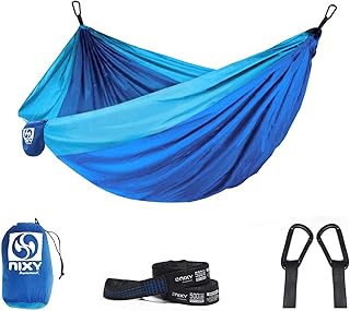 NIXY Doppel-Camping-Hängematte – leicht, tragbar, mit baumfreundlichem Aufhängesystem, Riemen, Ripstop-Diamant-Nylon für Wandern, Camping, Reisen, Strand und Rucksackreisen