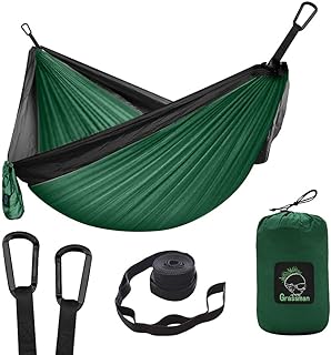 Grassman Camping-Hängematte, tragbar, mit Baumgurten, leichtes Nylon, Fallschirmhängematten, Camping-Zubehör, Ausrüstung für drinnen und draußen, Rucksackreisen, Reisen, Wandern, Strand