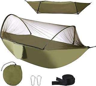 Camping-Hängematte mit Moskitonetz, Hängematten mit Baumgurten Karabinern, tragbare Hängematte für Herren und Damen, Nylon, Fallschirmhängematten für Rucksackreisen, Reisen, Terrasse, Hof, Grün