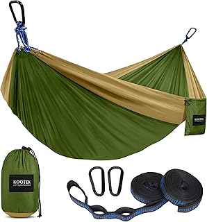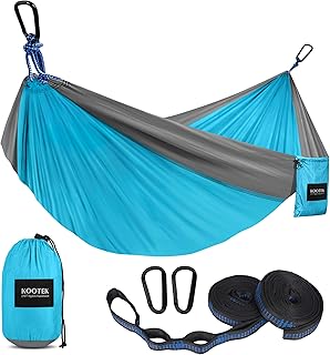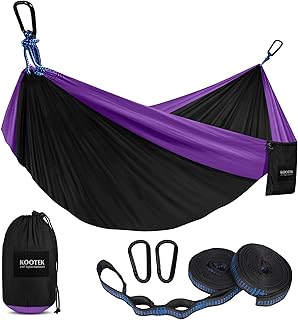 Kootek Camping Hängematte Doppel & Einzeln Tragbare Hängematte mit 2 Baumgurten, Leichte Nylon Fallschirmhängematten für Rucksackreisen, Reisen, Strand, Hinterhof, Terrasse, Wandern