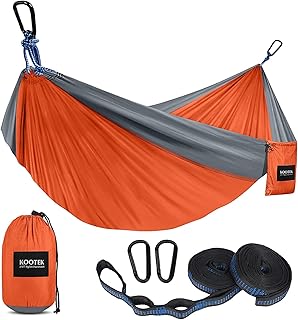 Kootek Camping-Hängematte Doppel & Einzelne tragbare Hängematte mit 2 Baumgurten, leichte Nylon-Fallschirmhängematten für Rucksackreisen, Reisen, Strand, Hinterhof, Wandern (Orange & Grau, klein)