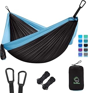 Grassman Camping-Hängematte, Doppel- und Einzelhängematte mit Baumgurten, leichte Nylon-Fallschirmhängematten, Camping-Zubehör, Ausrüstung für Innen- und Außenbereich, Rucksackreisen, Wandern, Strand