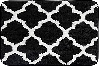 BEQHAUSE Badematte rutschfest 50×80cm Flauschiger Badteppich Maschinenwaschbar Wasseraufnahme Polyester Microfaser Badvorleger, Geeignet für Fußbodenheizung Dusche Badewanne Tür, 20mm Schwarz