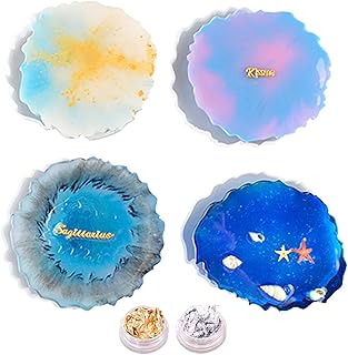 LONEA Silikonformen Epoxidharz Set 4 Stück,Expositharz Formen Untersetzer,DIY Set Untersetzer Silikonform,Epoxidharz Formen,Resin untersetzer,mit Imitation Blattgold,Silberfolie