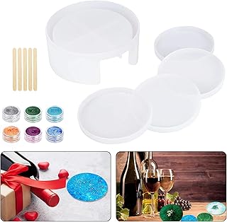 Fulushou 8 Stück Epoxidharz Silikonformen, Silikon Kunstharz Formen Resin Harz Untersetzer Schmuck Gießform, DIY Basteln Harz Casting Formen