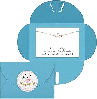 Lillyville - Willst du Meine Patentante Sein? - Geschenk für Patentante Fragen, zur Taufe, Taufgeschenk mit Anker Armband Silber - Umschlag Türkis