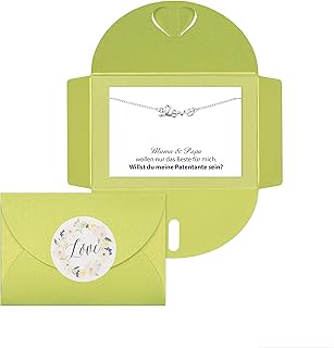 Lillyville - Willst du Meine Patentante Sein? - Geschenk für Patentante Fragen, zur Taufe, Taufgeschenk mit Love Armband Silber - Umschlag Hellgrün