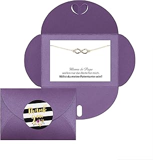 Lillyville - Willst du Meine Patentante Sein? - Geschenk für Patentante Fragen, zur Taufe, Taufgeschenk mit Infinity Armband Gold - Umschlag Lila