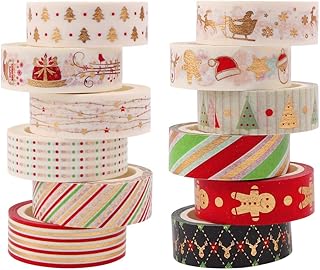 12 Rollen Weihnachten Washi Tape Set, Goldfolie dekorative Tape Masking Scrapbooking Tape Klebeband für DIY Crafts Weihnachtsdekoration Festivals Geschenkverpackung Party Favor Supplies
