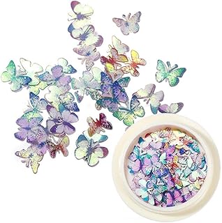 50 Stück/Box 3D Bunte Laser Schmetterling Muster Nagel Flocken Pailletten Spiegel glitzernde Pailletten Dekoration Nail Art DIY Zubehör (01)
