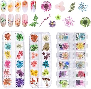 EMAGEREN Nagel Getrocknete Blume 3 Box Kleine Trockenblumen 3D Nailart Sticker Getrocknete Blumen Nagelkunst Aufkleber Getrocknete Blüten Nagel Kunst Zubehör für Nägel Dekoration Epoxidharz Dekor