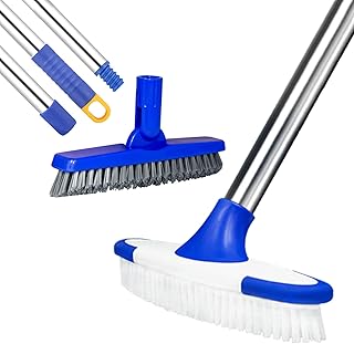 Bodenbürste 22 cm breit mit verstellbarem langem Griff – 114 cm, steife Borsten, Besen für drinnen und draußen, Reinigung für Badezimmer Küche Terrasse Garage Deck Pool Fliesen Wand Fugenmörtel