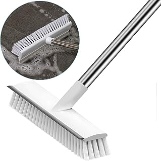 Bodenbürste mit langem Griff und Rakel, steife Borsten, Bürste Scrubber 2 in 1 Schaber und Reinigungsbürste für Deck, Badezimmer, Wanne, Fliesen, Fugenmörtel, Küche, Schwimmbad, Terrasse, Garagen