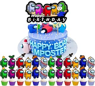 Game Among US Party Supplies HANEL-Space Werewolf Killing Toppers Cupcake Geburtstag Dekoration Set Happy Birthday Deko Bunte für Jungen Mädchen Kinder Erwachsene Party Dekorationen