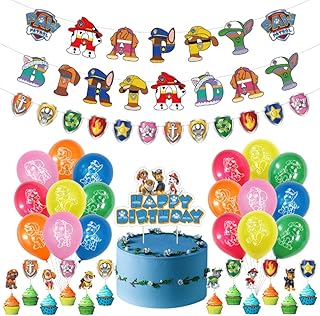 Paw Dogs Patrol Geburtstag Dekoration Set,Paw Patrol Happy Birthday Banner Kuchen-Toppers,Party Cake Toppers Latexballon Supplies für Kinder Baby Party Geburtstag Party Kuchen Dekoration Supplies