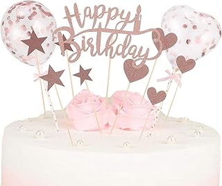 Fuyamp 23 Stück Roségold Kuchen Toppers, Personalisierte Happy Birthday Cake Toppers Dekorationen mit Geburtstag Party Cupcake Luftballons für Geburtstagstorte