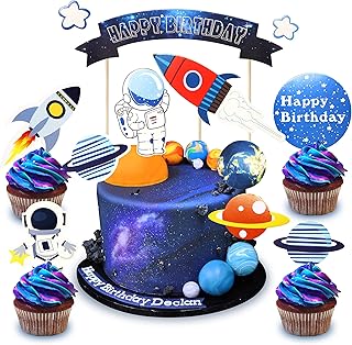 Regendeko 18er Happy Birthday Weltraum-Abenteuer-Thema Astronaut Cake Toppers Geburtstagskuchen Deko Cupcake Toppers für Weltraum Party Kinder Planeten Geburtstag Party Sterne Babyparty