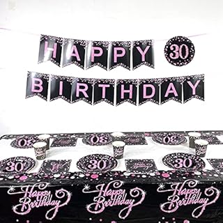 Amycute 65 -teiliges Party-Set zum 30. Geburtstag, Birthday Party Supplies, Banner, Teller, Becher, Servietten, Tischdecke für 16 Personen.