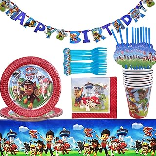 Gebutstag Party Set 52-Teiliges Party-Set Paw Patrol Teller Becher Servietten Geburtstag Dekoration Set Happy Birthday Deko Bunte Partykette Girlande Banner
