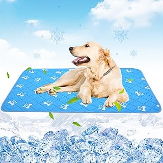 PUPTECK Summer Dog Cooling Pad - Ice Silk Cooling Mat for Dogies Welpen, Super Absorbent Pee Pad with Cute Pattern, Anti Slip Bottom (Navy Blue)