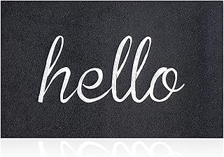 LAN SHAN QUE Black Door Mat Hello Welcome Mats for Front Door Durable Natural Rubber Backing Indoor Outdoor Doormat,Super Absorb Mud Easy Clean Heavy Duty Entryway Rug